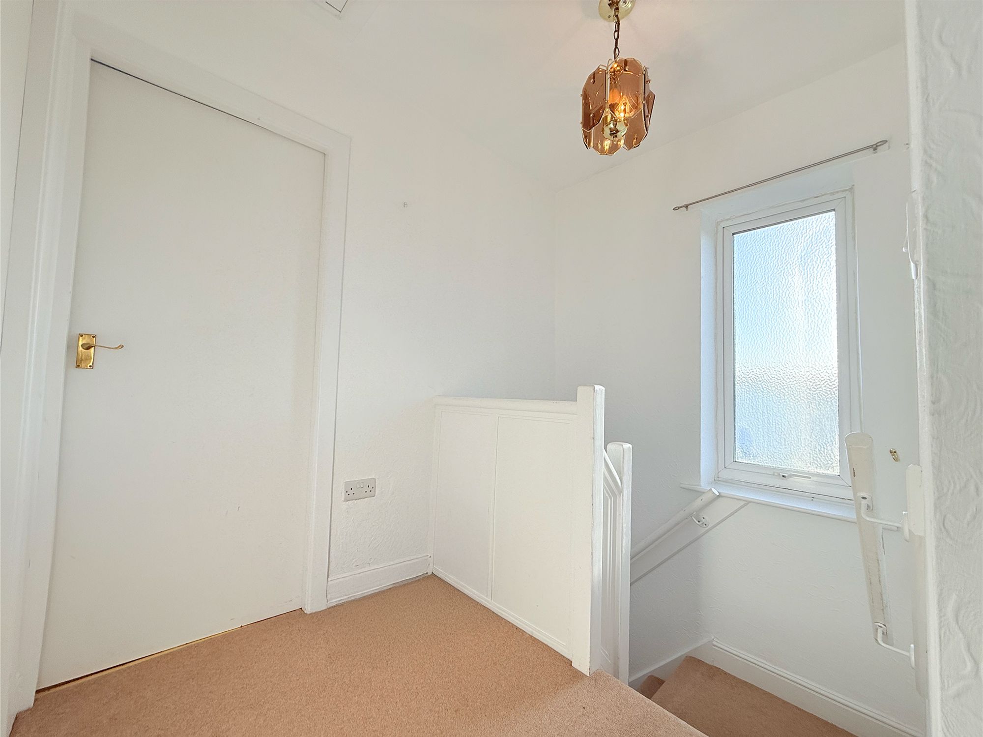 A bright and airy first-floor landing with enough space for free-standing furniture, creating a practical and pleasant transition between rooms. The landing provides access to the WC, family bathroom, and all three bedrooms, as well as the loft via a handy loft hatch.