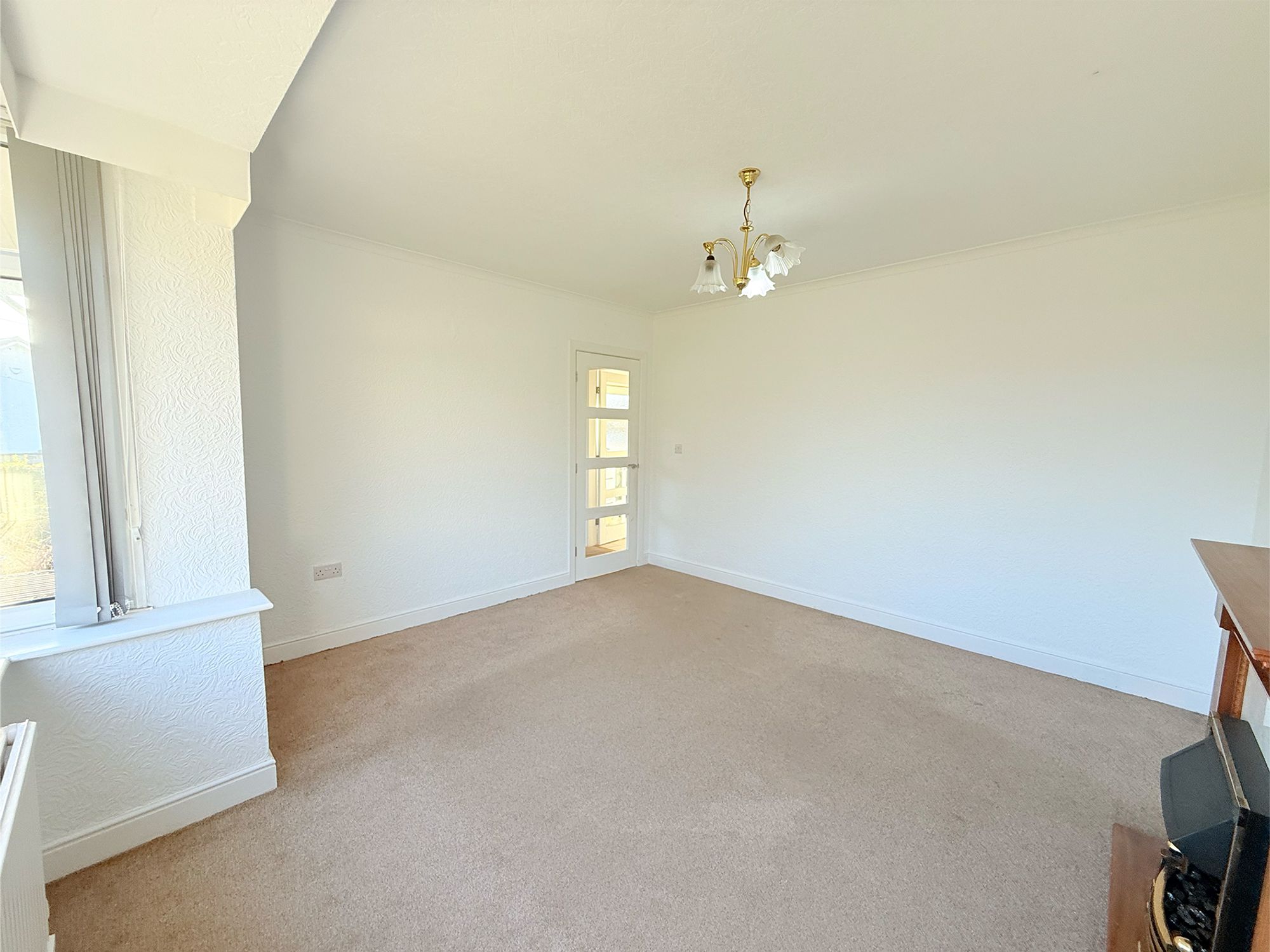 Situated to the rear of the property, this spacious dining room is flooded with natural light thanks to a striking floor-to-ceiling glass sliding doors that open onto the raised patio area. Finished in neutral tones, the room feels bright and inviting, with a coal-effect electric fire set within a brick and wood-effect surround providing a cosy focal point. There is ample space for a full-sized dining suite, making it ideal for both everyday family meals and entertaining.