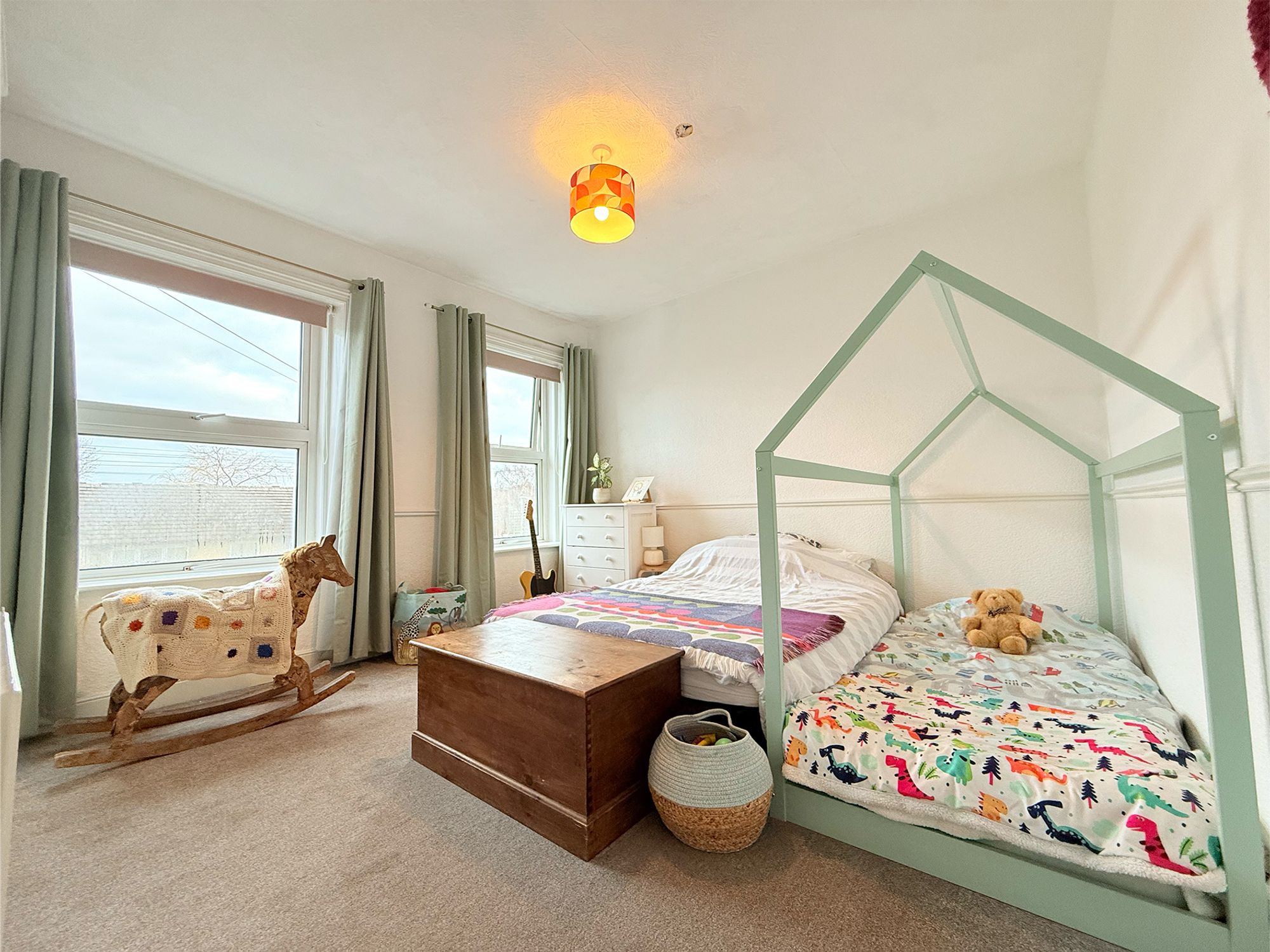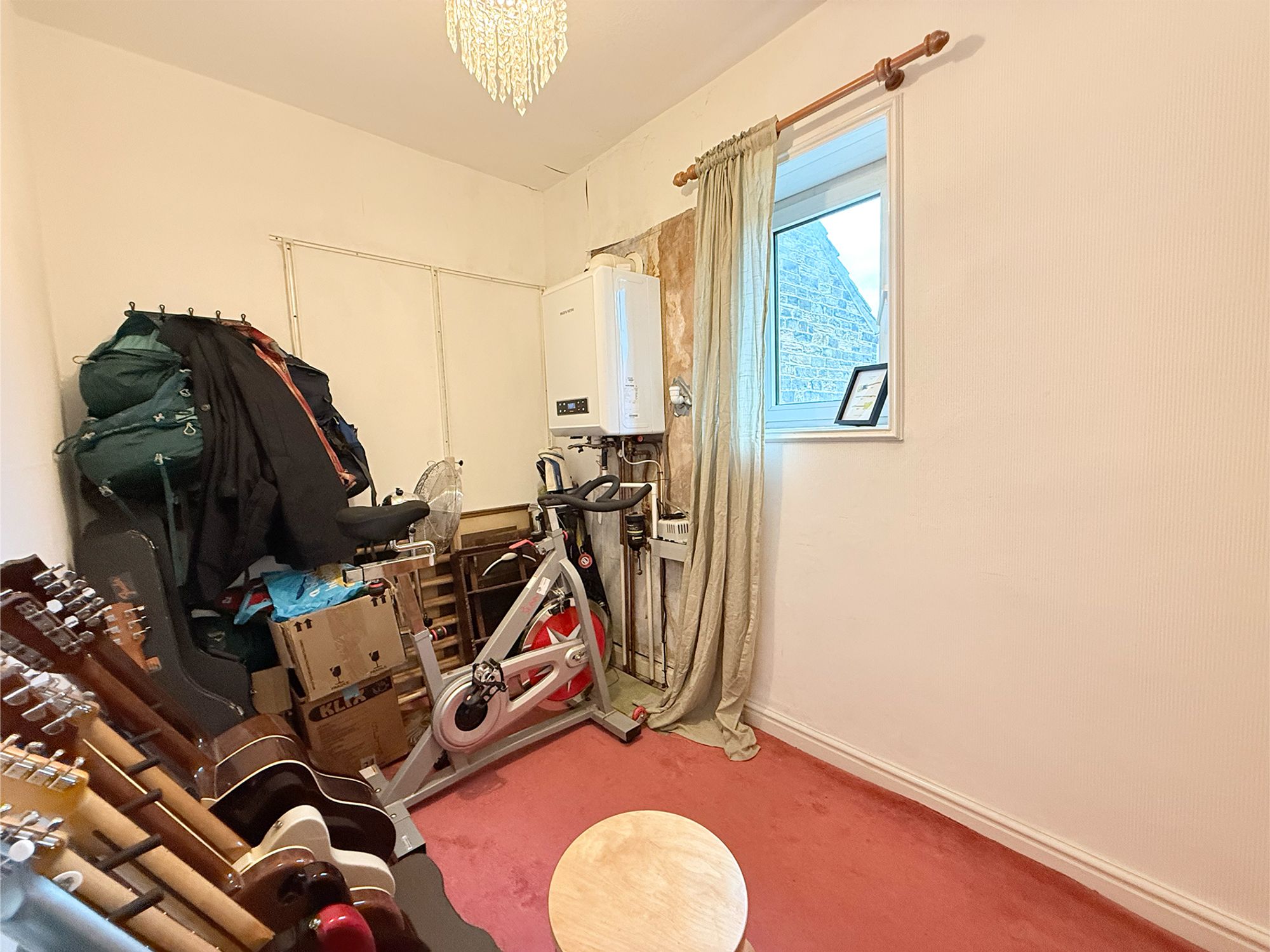 Located to the rear of the property, this well-sized bedroom offers flexibility for use as either a snug double or a spacious single room, with ample space for freestanding furniture. Neutrally decorated and finished with contrasting carpets, the room also houses the boiler, allowing for easy access and maintenance.