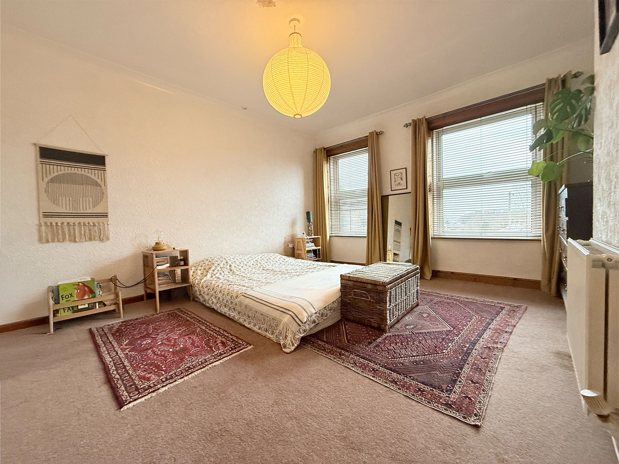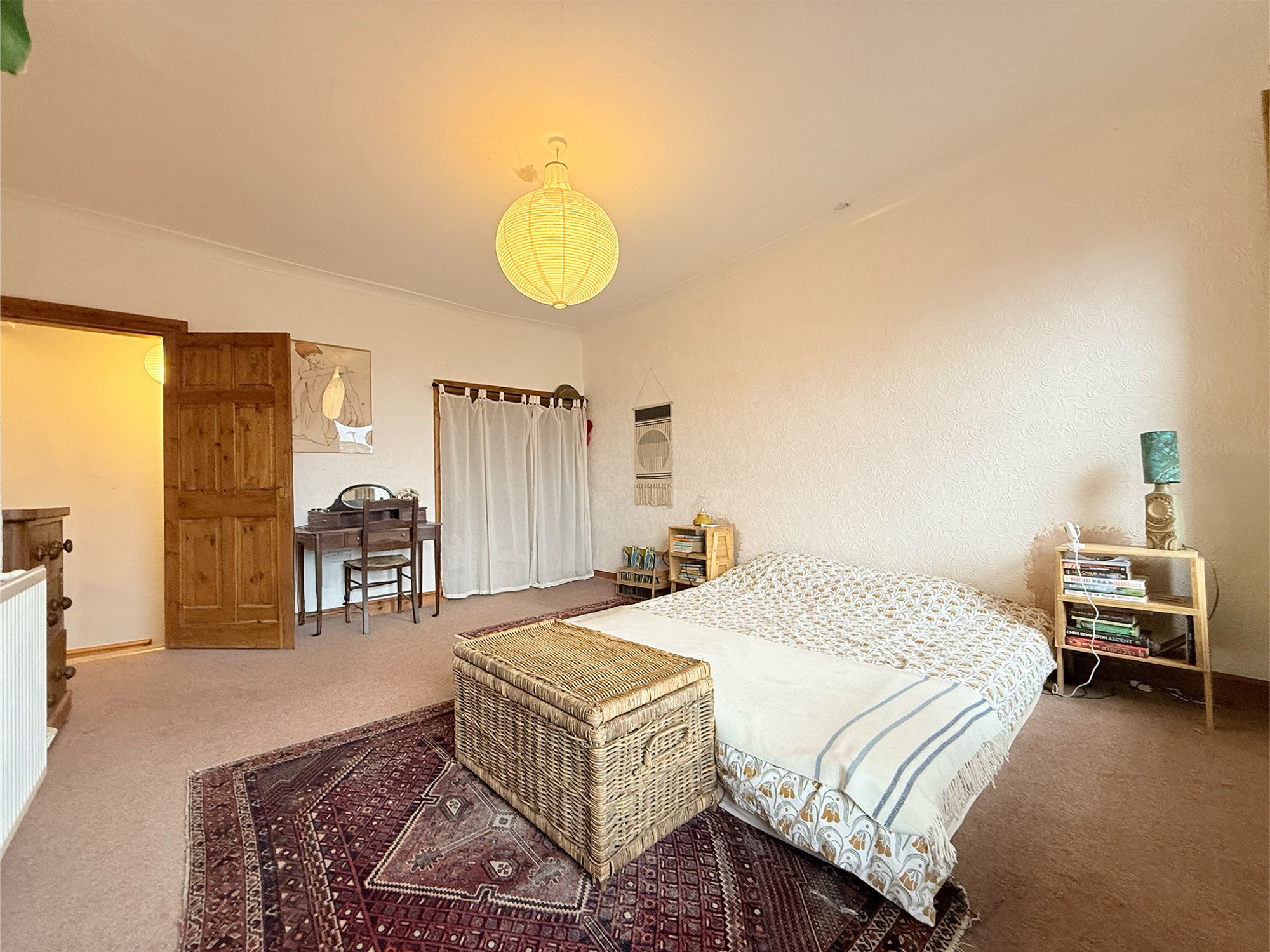 Located to the front of the property, this exceptionally spacious double bedroom benefits from dual-aspect windows that flood the room with natural light. The room offers ample space for a super king-size bed along with additional freestanding furniture. Built-in storage is currently used as a wardrobe and could be further enhanced with fitted storage cupboards if desired.