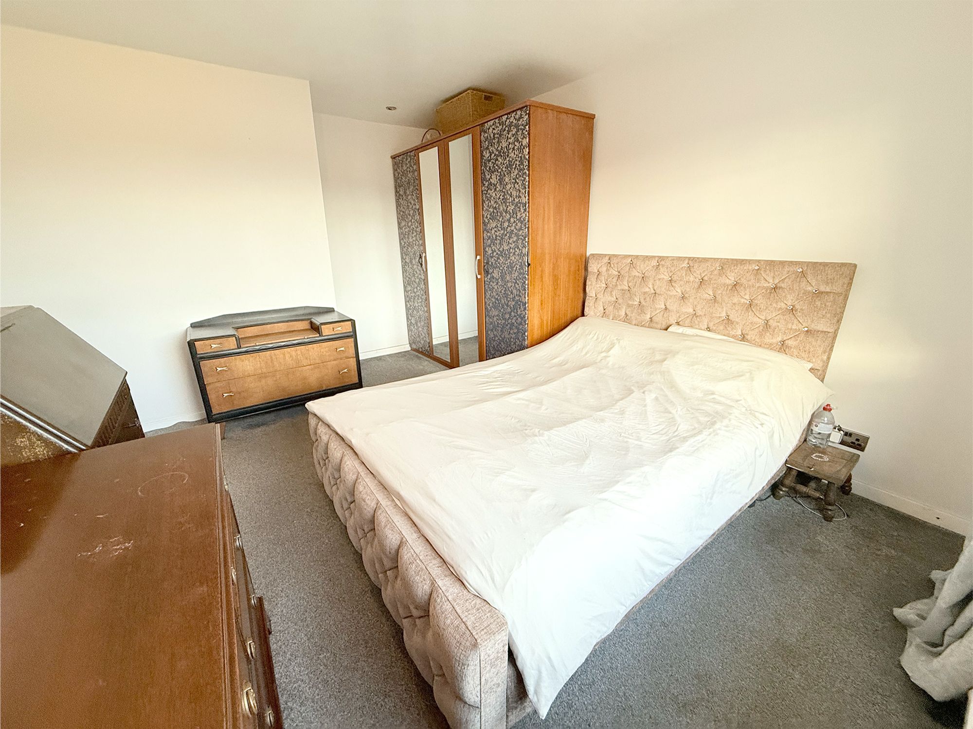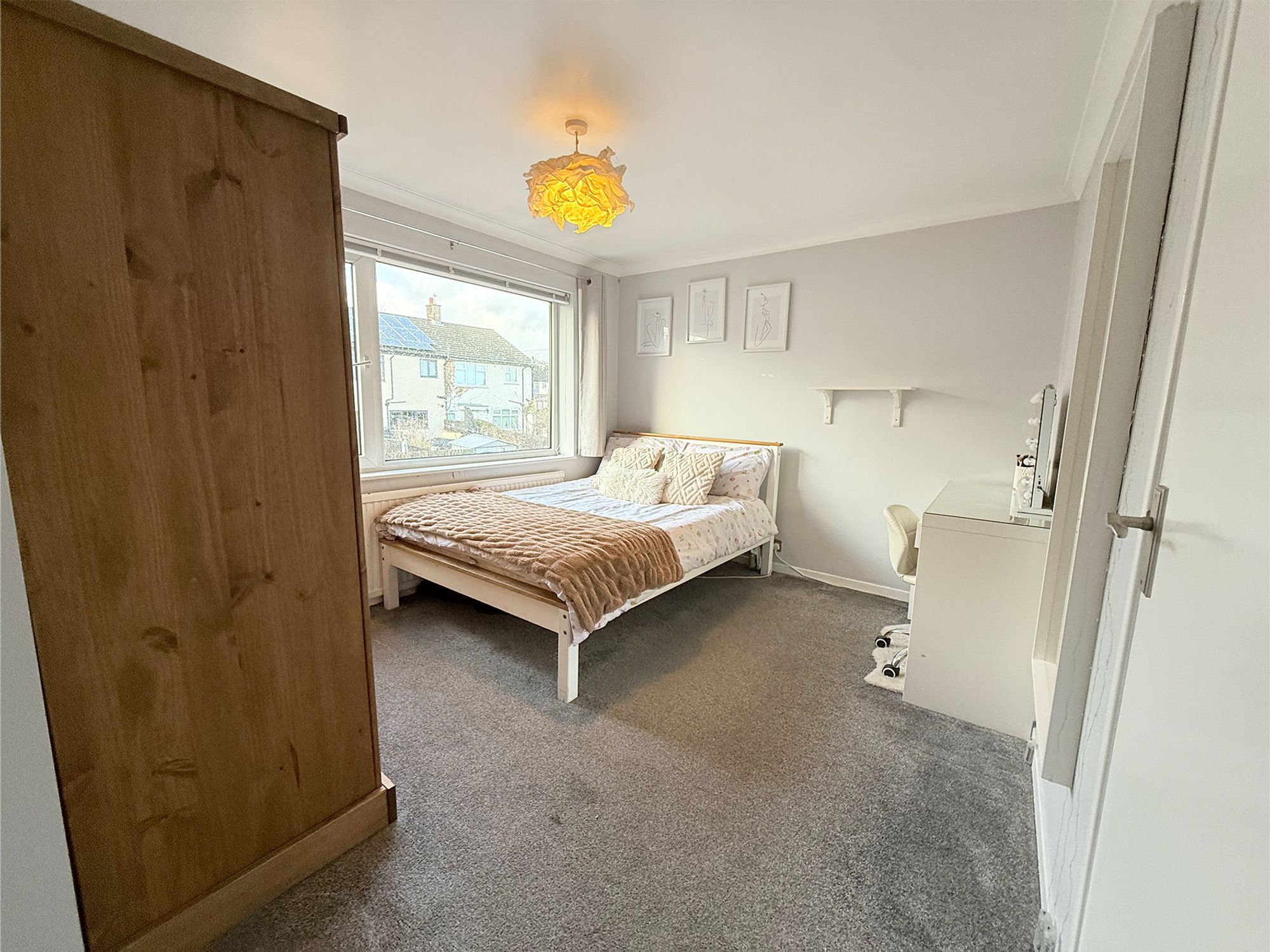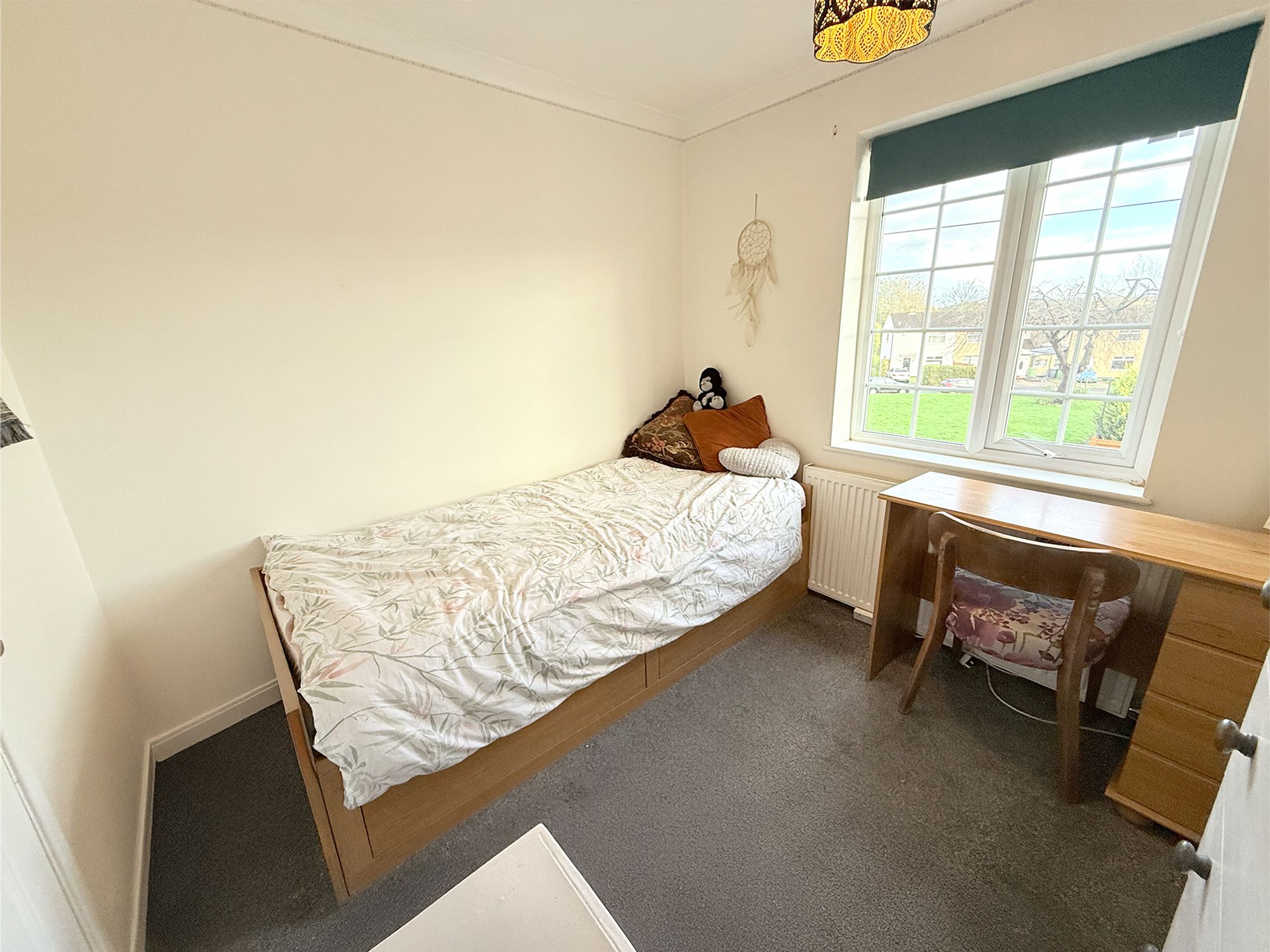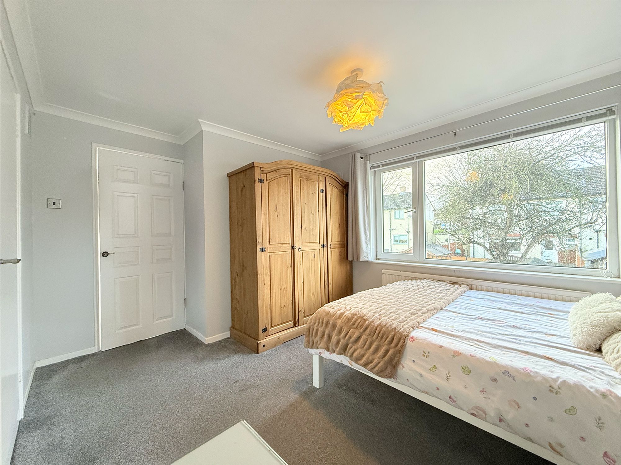 Located to the rear of the property with pleasant views over the garden, this spacious double bedroom is finished in soft, neutral tones. It benefits from a useful built-in storage cupboard, while still offering plenty of space for free-standing furniture, making it an ideal guest room or second bedroom.