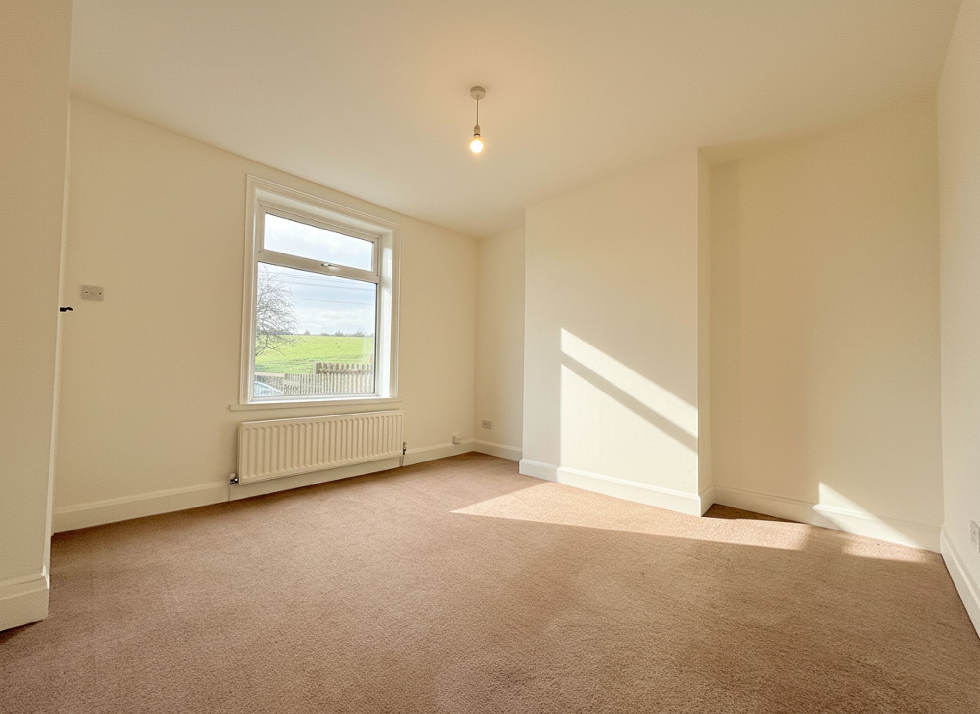 This lovely double bedroom is situated at the front of the property and is decorated in neutral tones, offering a calm and versatile space. The room benefits from beautiful field views, creating a peaceful and relaxing environment.