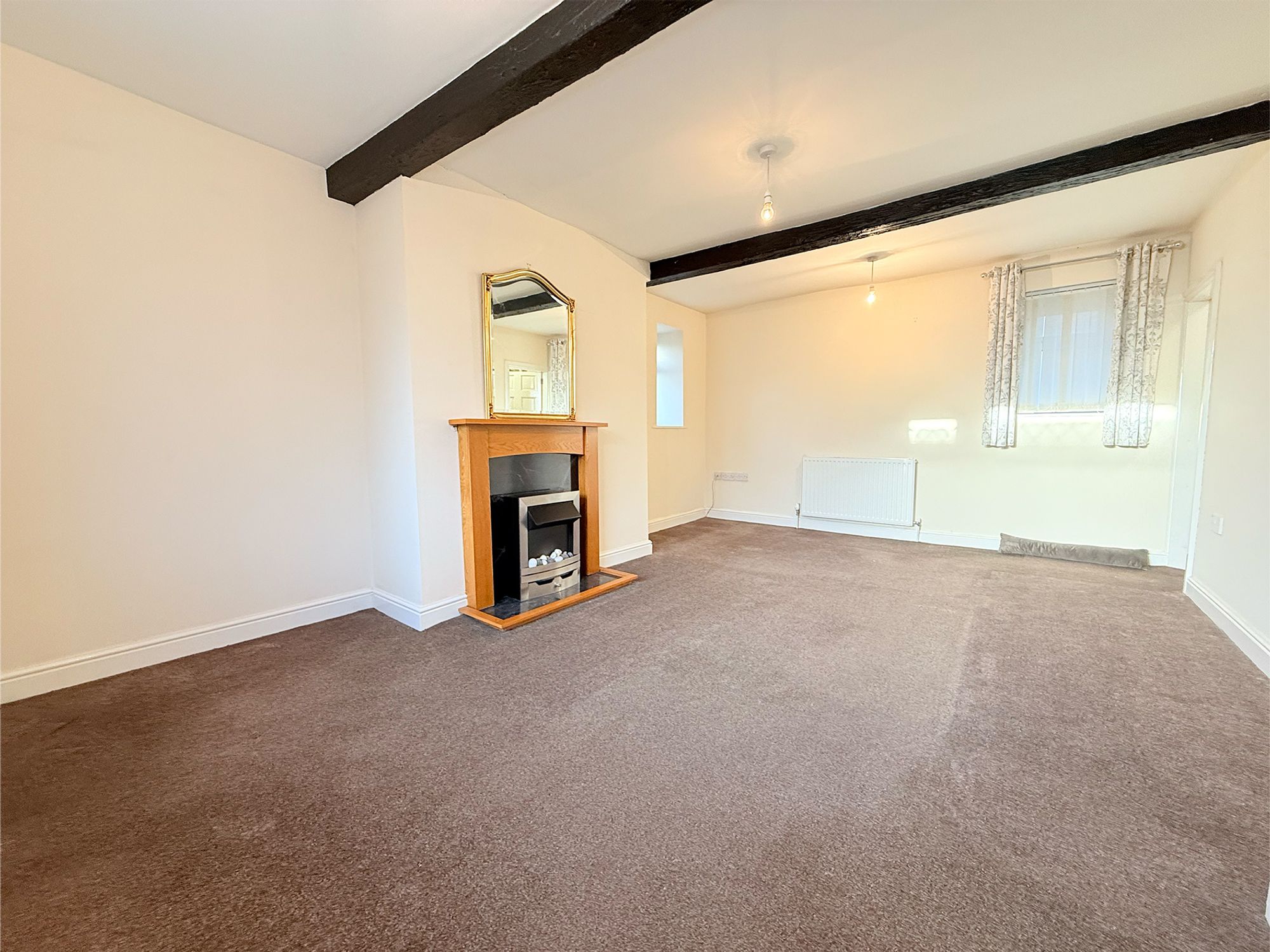 Spanning the full depth of the property, this spacious living room enjoys an abundance of natural light courtesy of dual aspect windows. The generous proportions allow ample space for a variety of family seating arrangements, while a contemporary electric fire set within a wood and marble-effect surround provides an attractive focal point. The room also benefits from access into the cellar and features original wooden beam details, adding character and charm to this inviting living space.