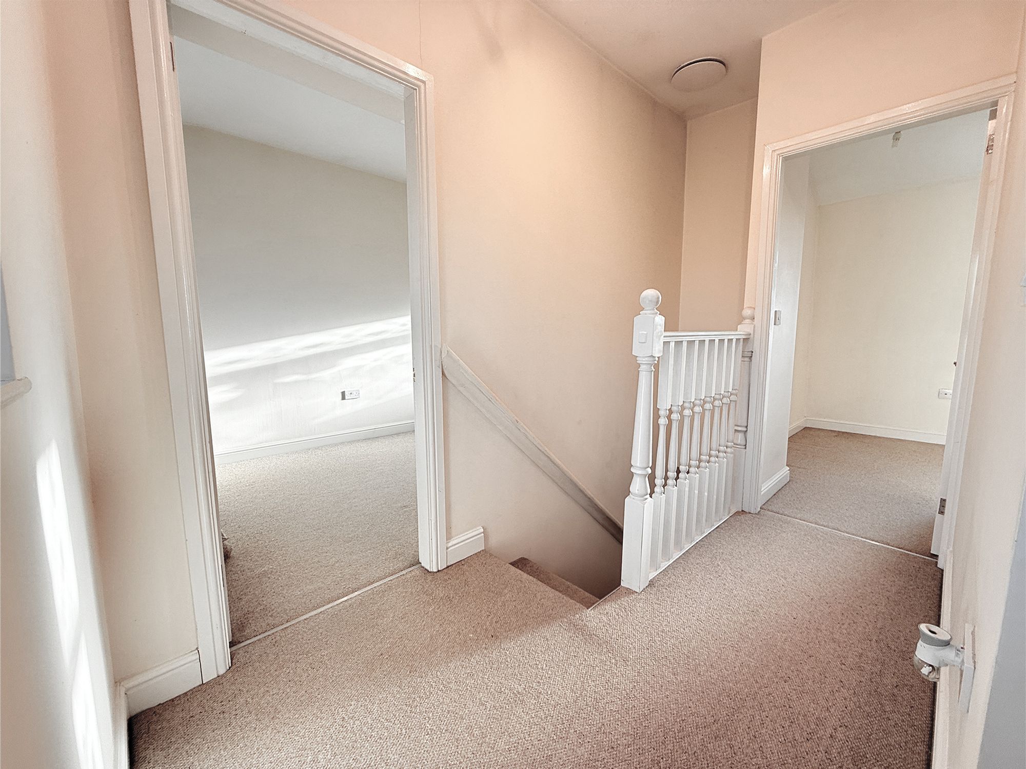 A bright and spacious landing, neutrally decorated throughout, providing access to both bedrooms and the family bathroom. The space also benefits from a handy loft hatch offering access to the attic, adding further storage potential.