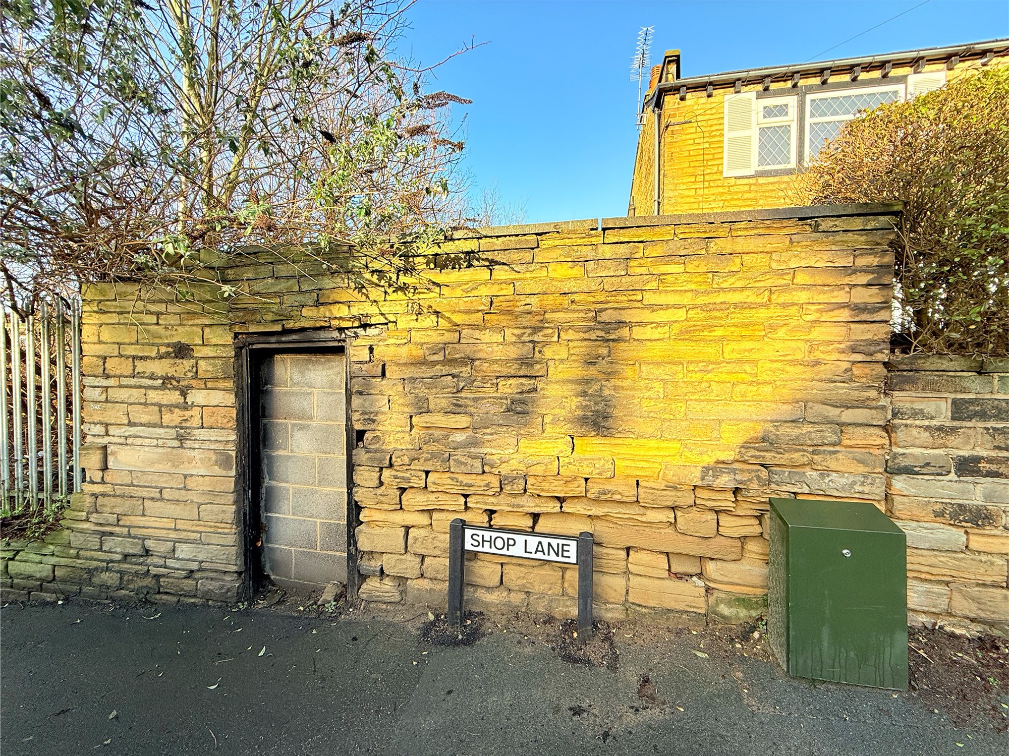 To the front of the property is a stone-flagged patio area leading to the front door, complemented by slate-chipped planted beds that enhance the kerb appeal. The garden is enclosed by attractive Yorkshire stone walls and mature hedging, creating a private and established setting. Stone steps provide access down to the garden space, while an additional outbuilding, currently a bricked-up former toilet block, offers excellent potential for conversion into outdoor storage, ideal for garden tools and outdoor equipment.